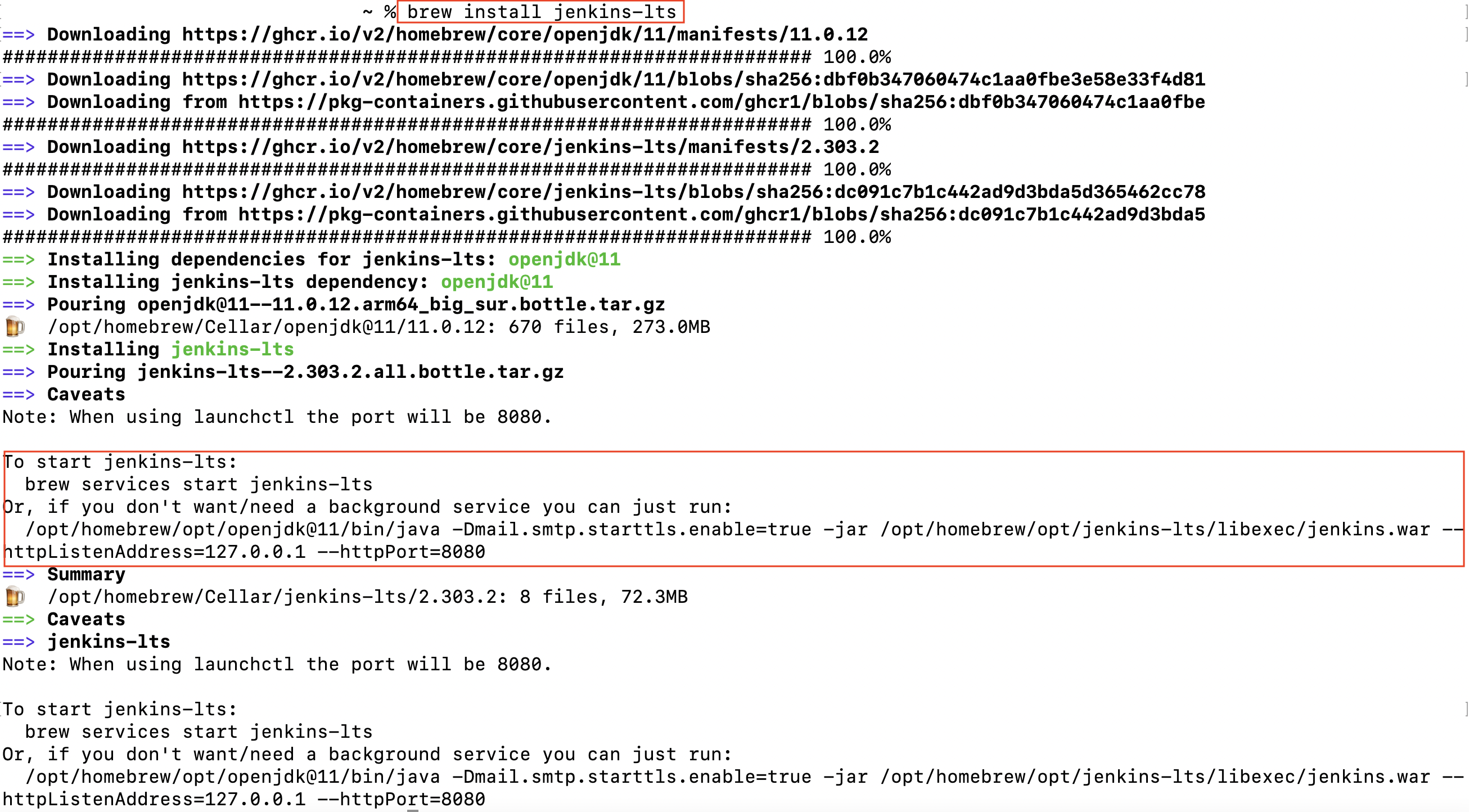 4. 위의 화면에서 Note로 명시한 것처럼 jenkins-lts를 실행시키는 것을 다음 명령어로 실행할 수 있다.
