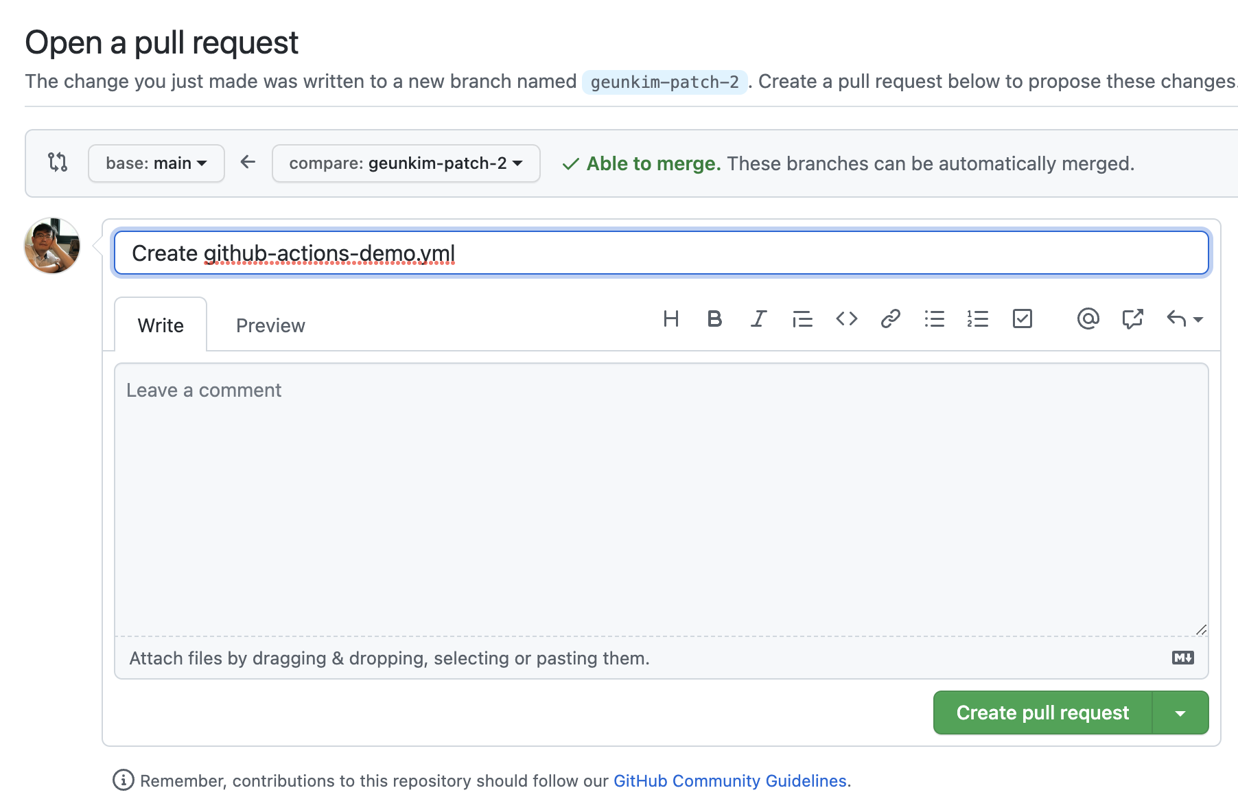 참고자료: Quickstart for GitHub Actions: https://docs.github.com/en/actions/quickstart